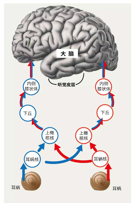人類的大腦,偉大神秘,當(dāng)外界有聲音來臨時(shí),大腦里會(huì)發(fā)生一種獨(dú)特的雙耳處理,根據(jù)所獲得信息,如時(shí)間、強(qiáng)度、相位、頻率等等,利用接受聲音信號(hào)有利位置更好的耳朵或從雙耳信號(hào)差異中提取有效聲音信息,消除噪聲,從而進(jìn)行一個(gè)同側(cè)或?qū)?cè)信號(hào)處理,獲得清晰立體聆聽。因此,雙耳聆聽有助于增加兩側(cè)大腦聽覺通路的活躍性,而單側(cè)聆聽因?yàn)橹淮碳蝹?cè)就容易導(dǎo)致醫(yī)學(xué)上的“聽覺剝奪”現(xiàn)象。見圖一